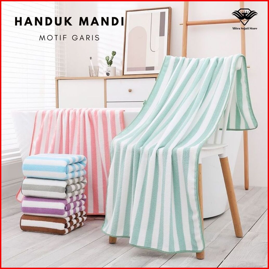 Handuk Mandi Dewasa Motif Garis-garis Tebal Lembut Cepat Menyerap Air Uk 140cm X 70cm - St