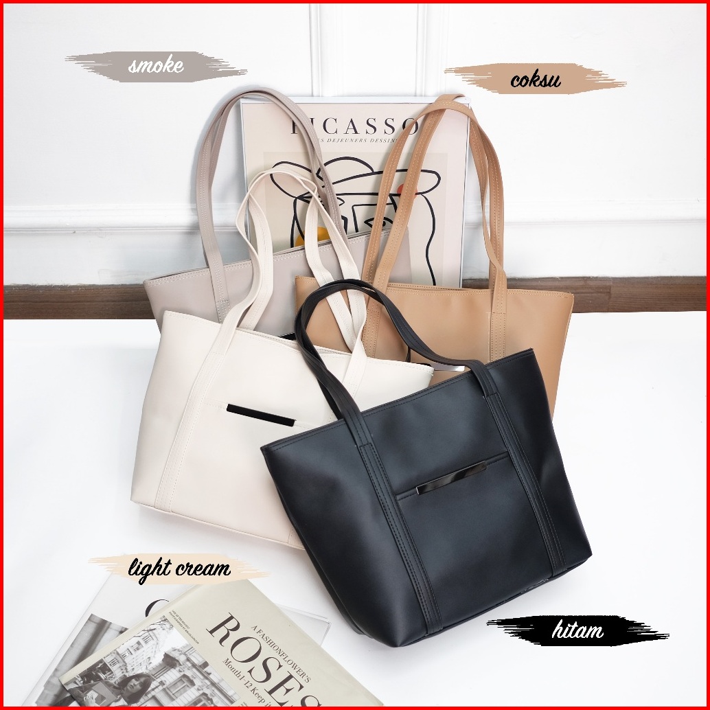 Tote Bag Merlyn Strip Kulit Sintetis Wanita