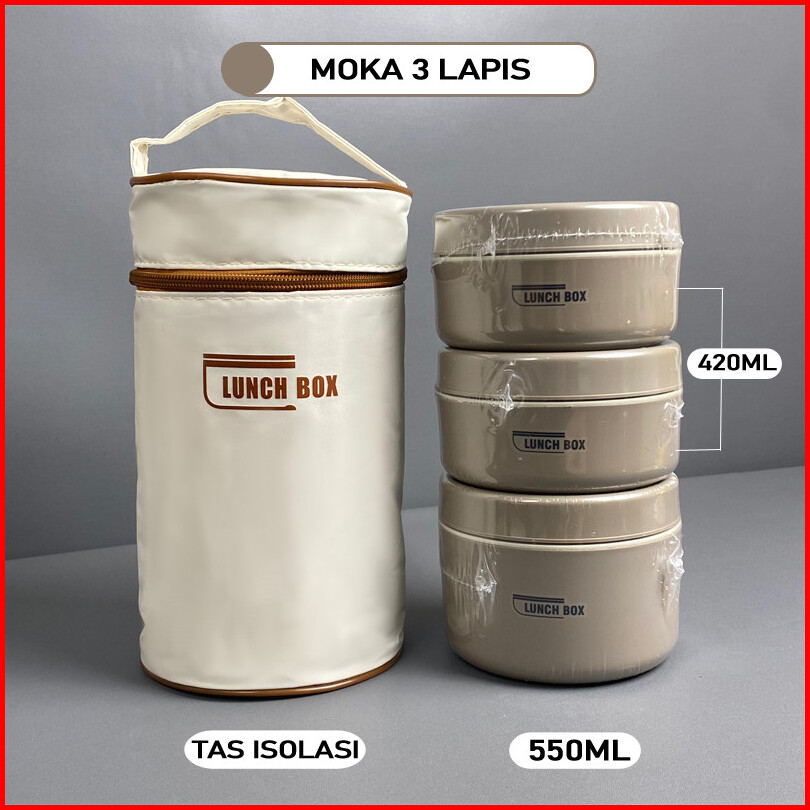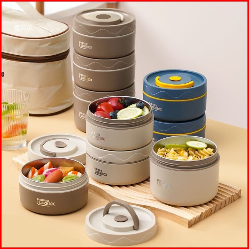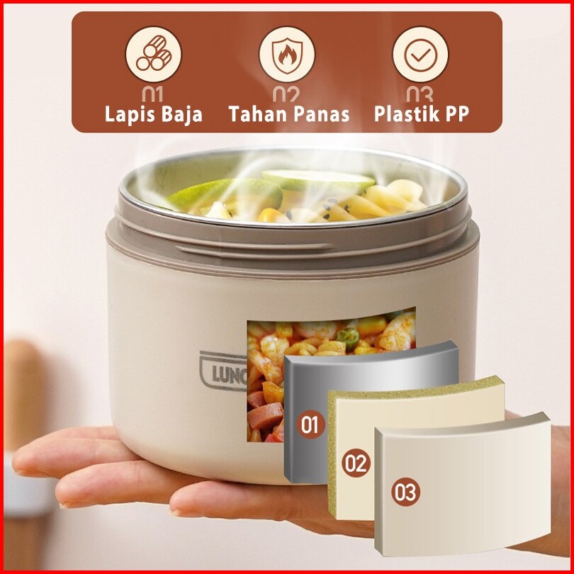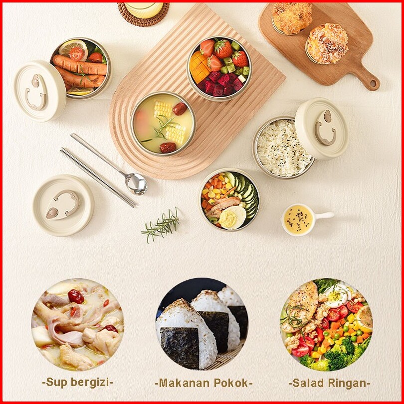 1 Set Kotak Makan Siang Stainlees Steel Tahan Panas Desain Elegan Termos Sup Makanan Bekal Nasi Tahan Panas Dan Dingin