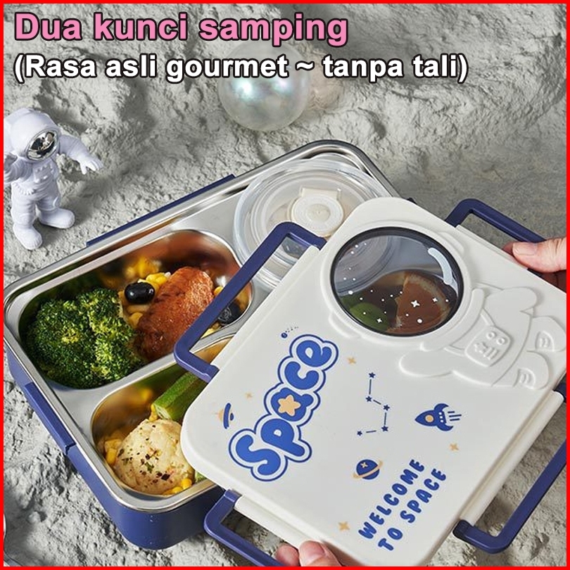 Kids Premium Lunch Box Kotak Makan Anak Stainless Steel Space Astronaut Astonot 3sekat 4sekat