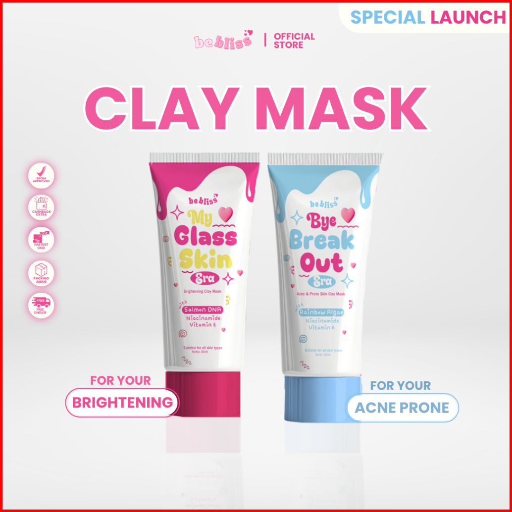 Bebliss Clay Mask My Glasskin Era Brightening Dan Bye Breakout Era Acne Prone Skin Masker Wajah Perawatan Mencerahkan