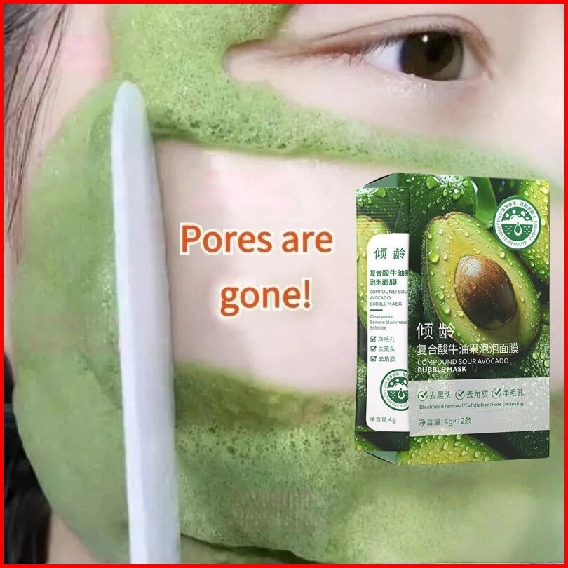 Masker Gelembung Alpukat Asam Kompleks 4g 12pcs Masker Tidur Masker Pembersih Mendalam Gelembung Alpukat Untuk Pria Dan