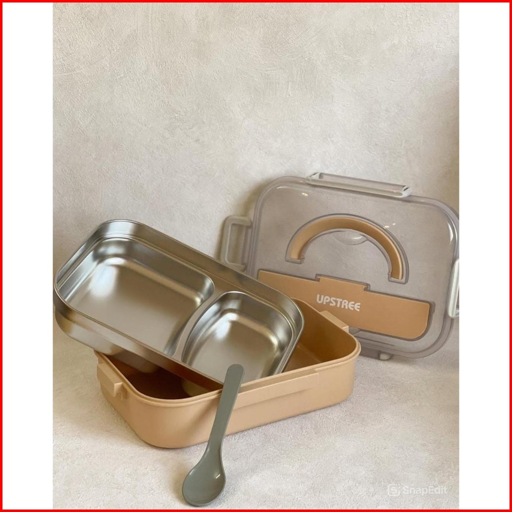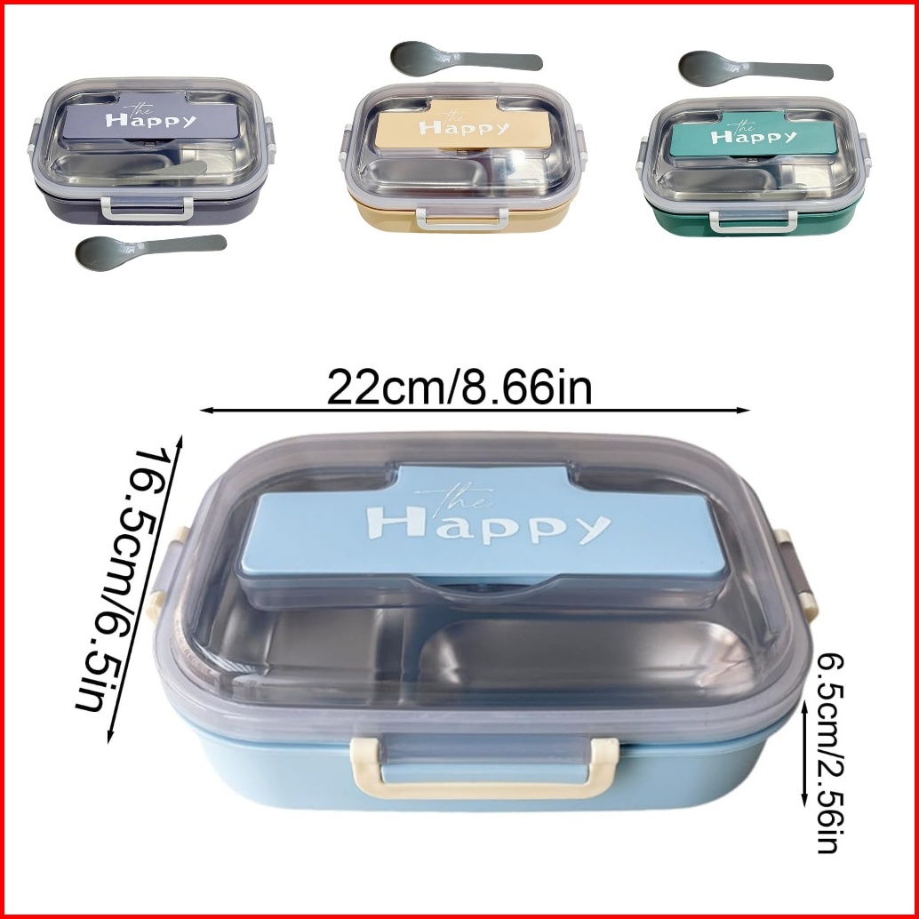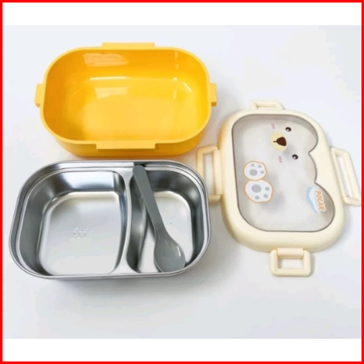 Kotak Makan Anak Stainless Steel Lunch Box 2 Sekat Lunch Box Kotak Bekal Wadah Makanan Dapat Sendok - Happy