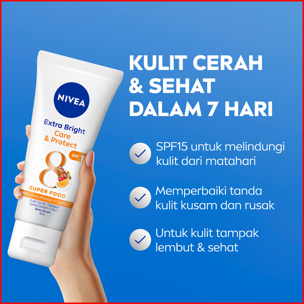 Nivea Body Serum Extra Bright Care Protect Spf 15 70ml - Hand Body Serum Lotion Moisturizer Mencerahkan Kulit Kusam Bada