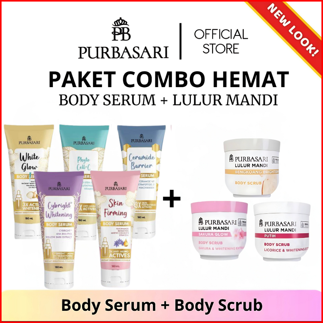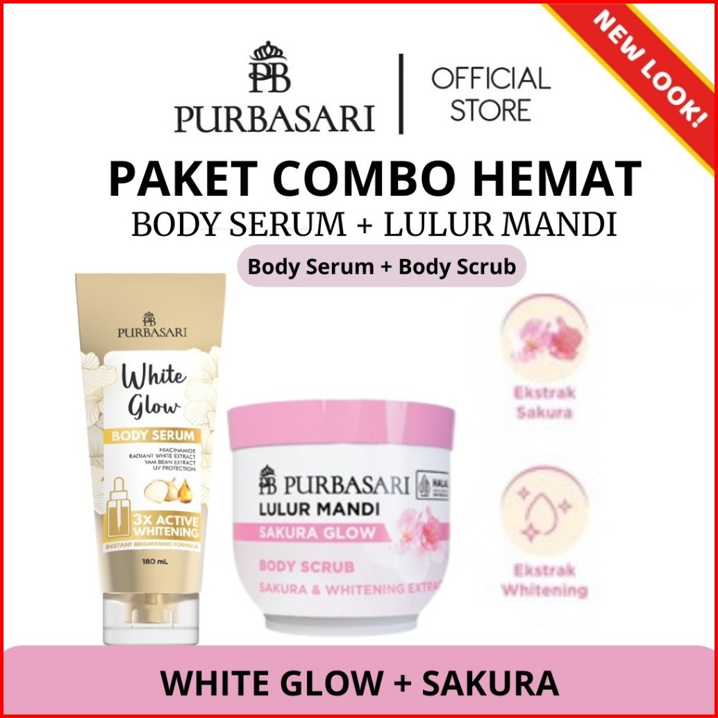 Mfi - Paket Hemat Combo Purbasari Body Serum White Glow 180 Ml Lulur Mandi Body Scrub 100gr 200 Gr Sakura Putih Bengkoan