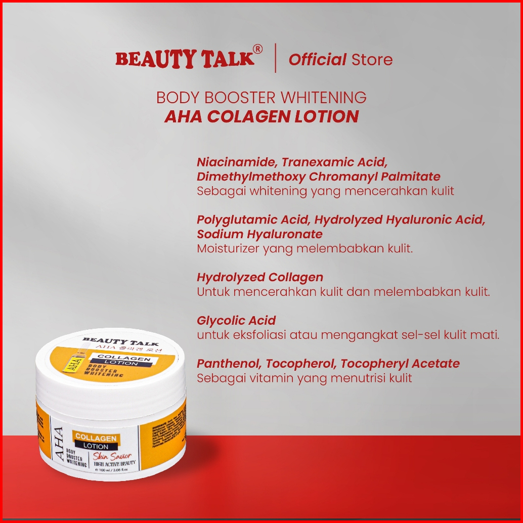 Bundling Hemat-2pcs Beauty Talk Aha Collagen Lotion 100 Ml Lotion Pencerah Tubuh Efektif