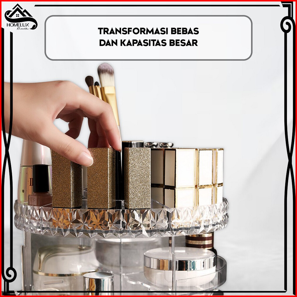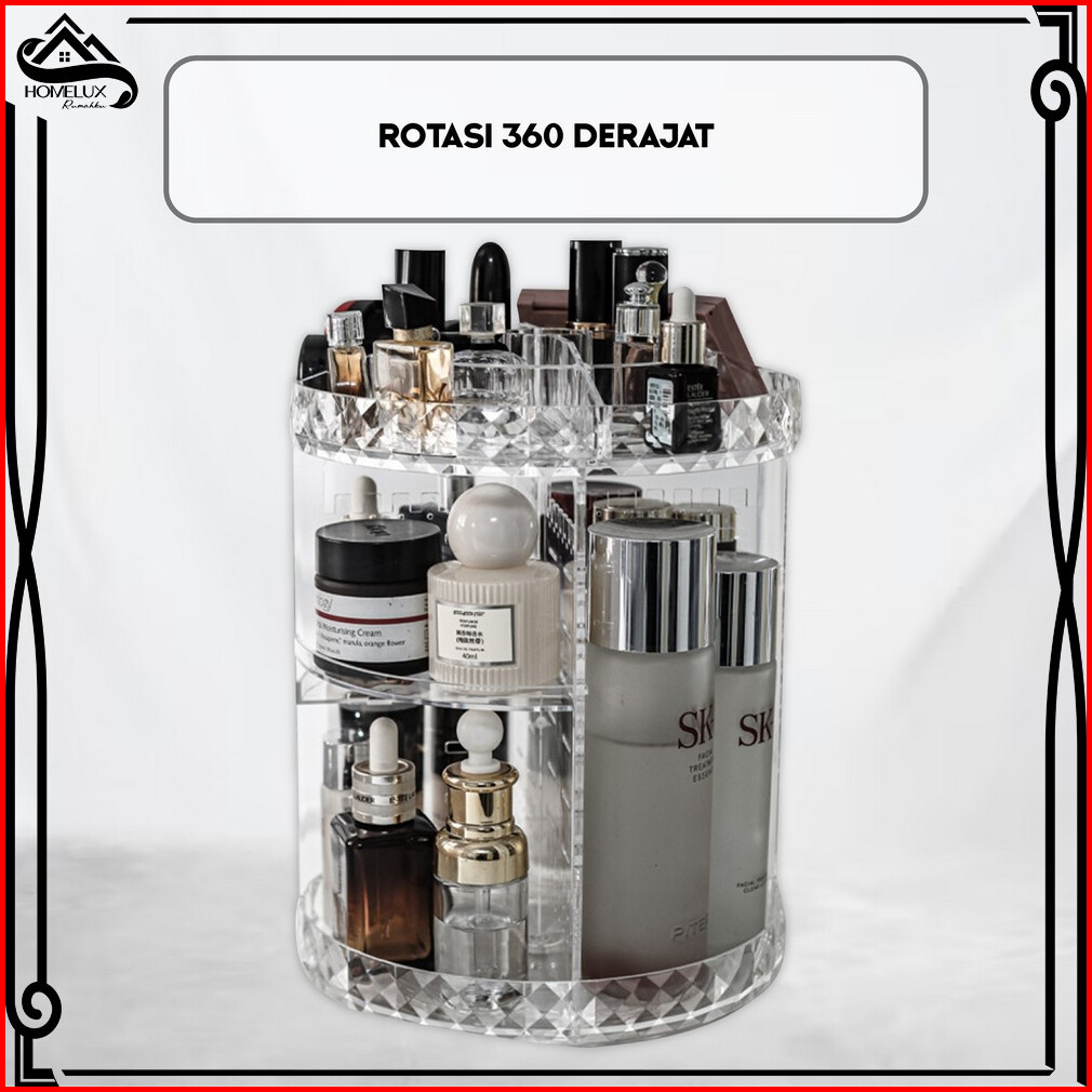 Home-k5 Rak Makeup Kosmetik Acrylic Diamond Rak Skincare Putar 360 Derajat Rak Aesthetic