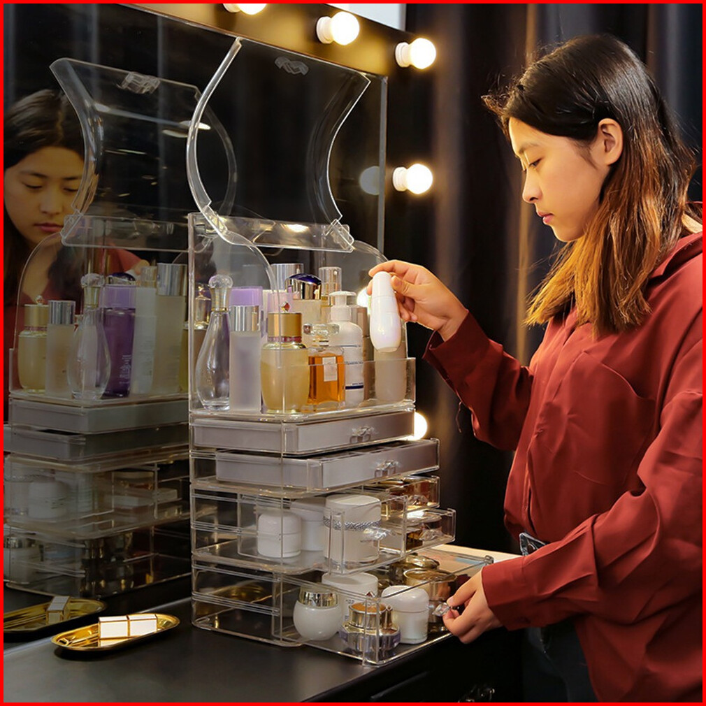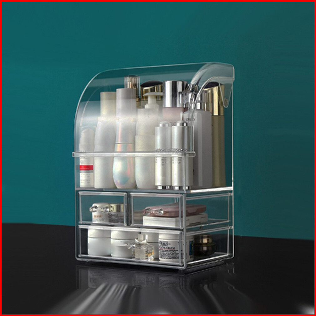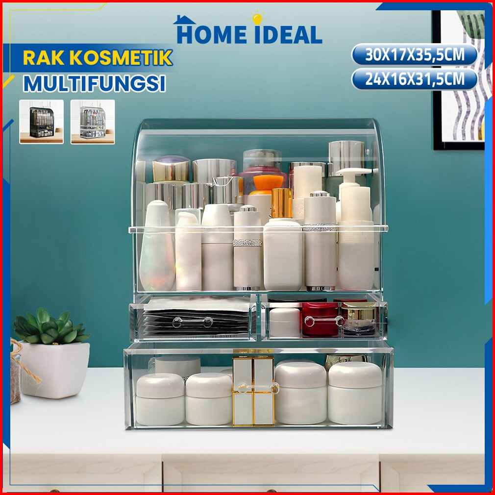 Rak Kosmetik Dengan Laci Anti Debu Multifungsi Tempat Penyimpanan Make Up Skincare Dengan Tutup Rak Akrilik Drawer Cosme