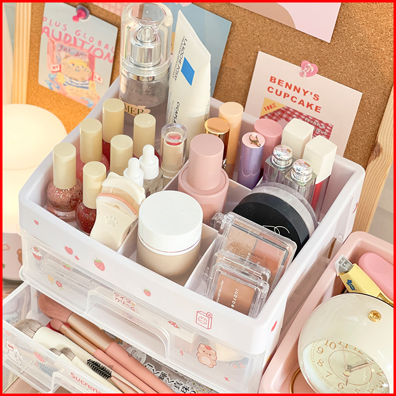 Penyimpanan Multifungsi 3 Laci Makeup Organizer Rak Make Up Susun Tempat Kosmetik Multifungsi
