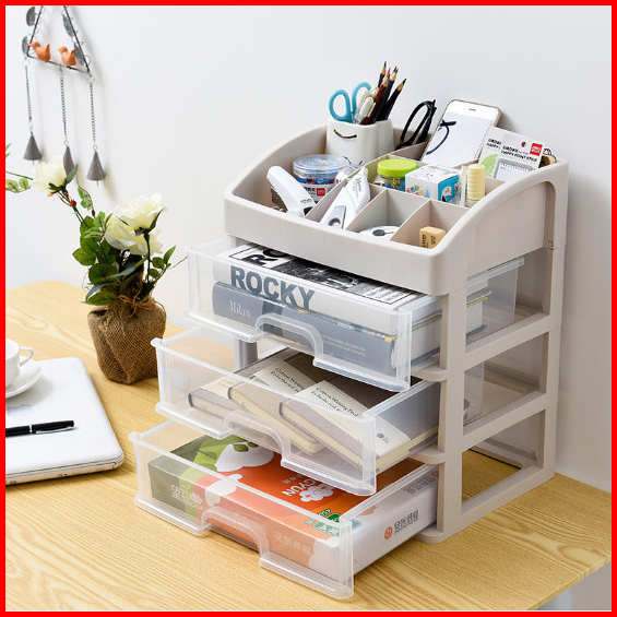Rak Kosmetik 3 Laci Jumbo Multifungsi Penyimpanan Makeup Serbaguna Box Organizer Putih Transparant