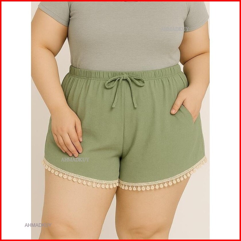 Celana Pendek Wanita Jumbo Hotpants Crinkle Muat Bb 75kg100kg Adem Nyaman Di Rumah