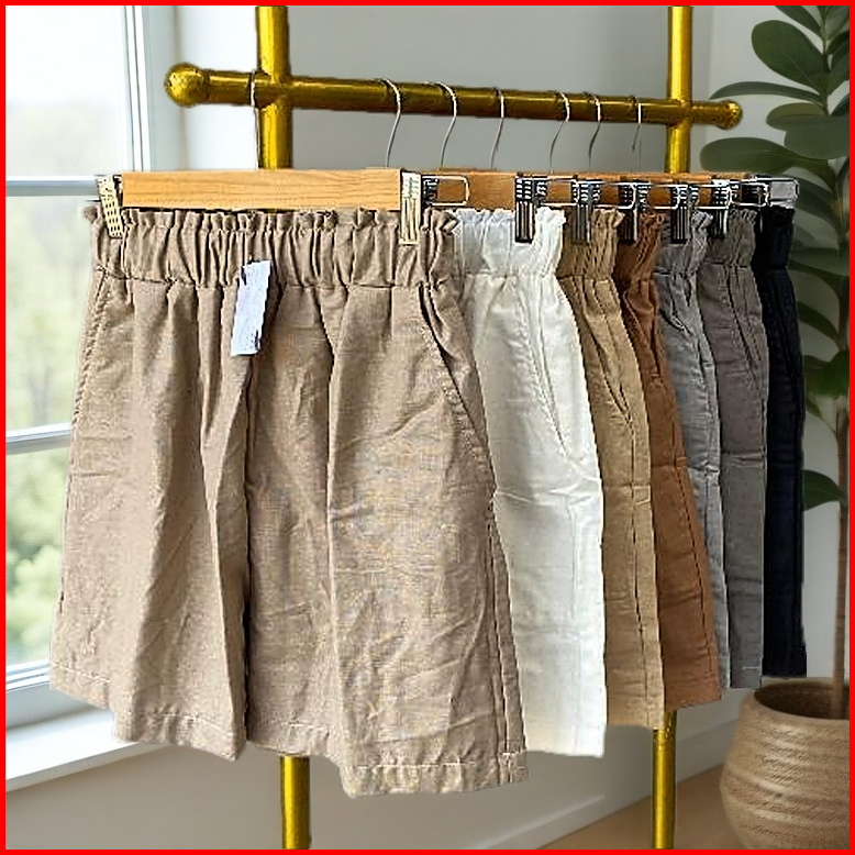 Celana Pendek Wanita Short Pants Pinggang Elastis Kantong Samping Bahan Linen Joya Pants