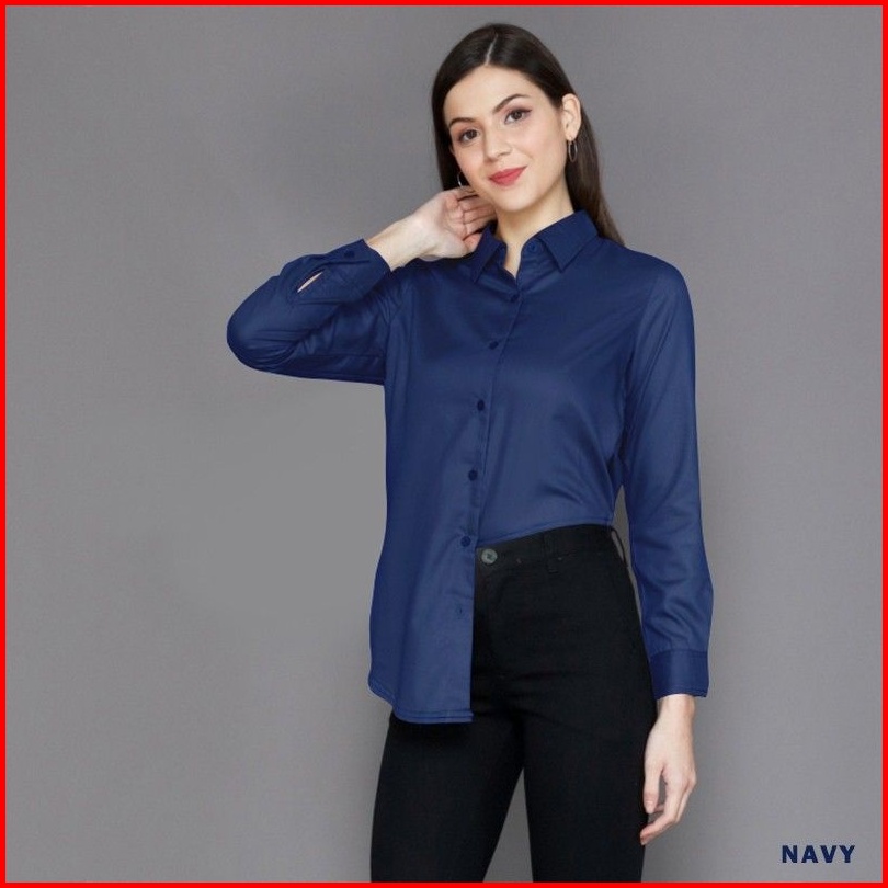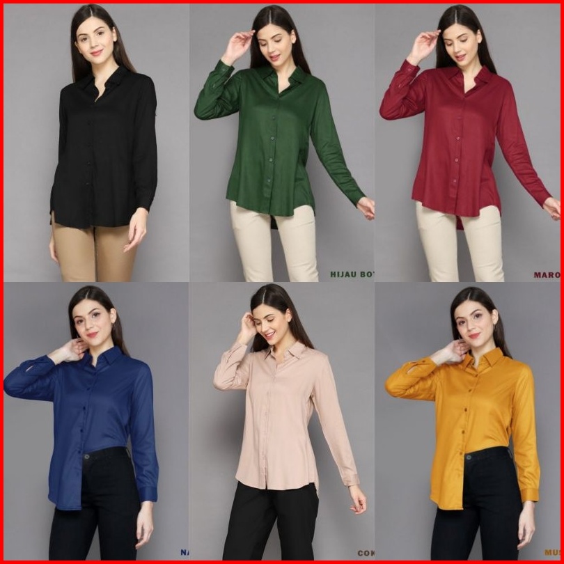 Kemeja Wanita Polos Lengan Panjang Basic Slimfit Casual Formal Kerja Premium Distro