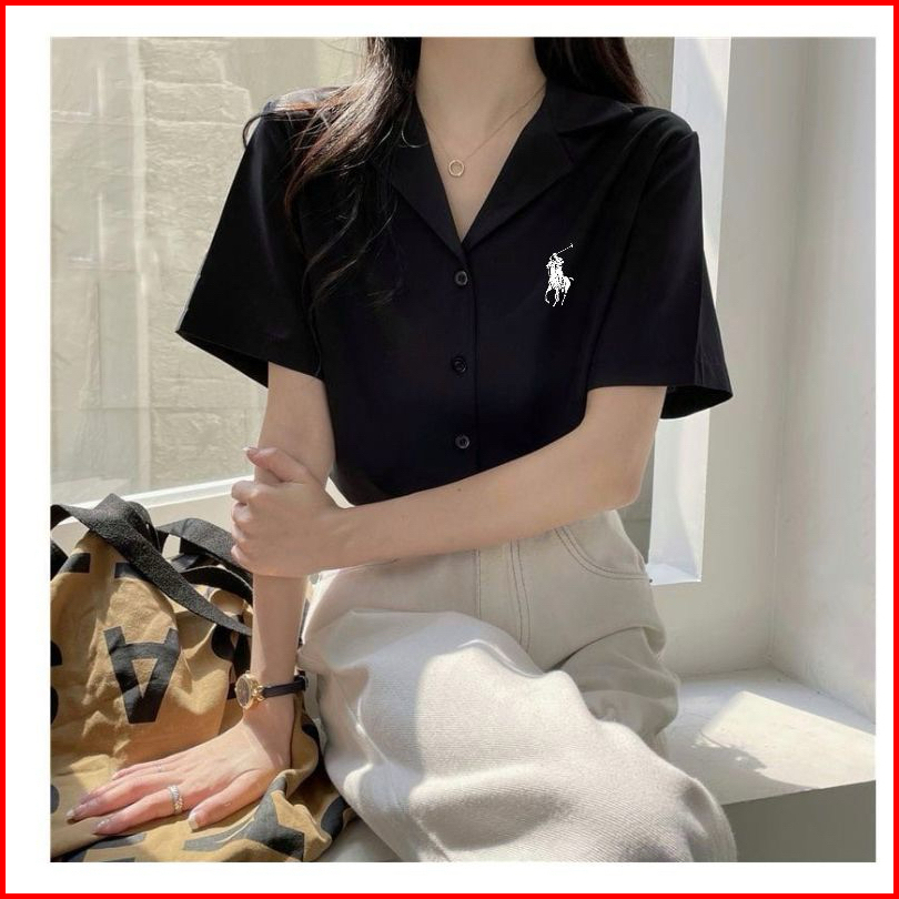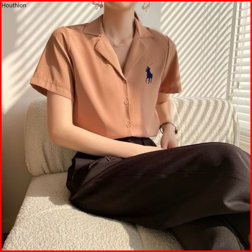 Kemeja Polos Logo Samping Lengan Pendek Kemeja Kasual Wanita Kemeja Kerja
