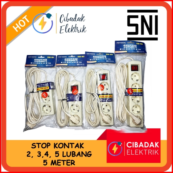 Termurah Stop Kontak 2 3 4 5 Lubang Kabel 1.5 3 5 Meter Asli Tembaga Sudah Sni