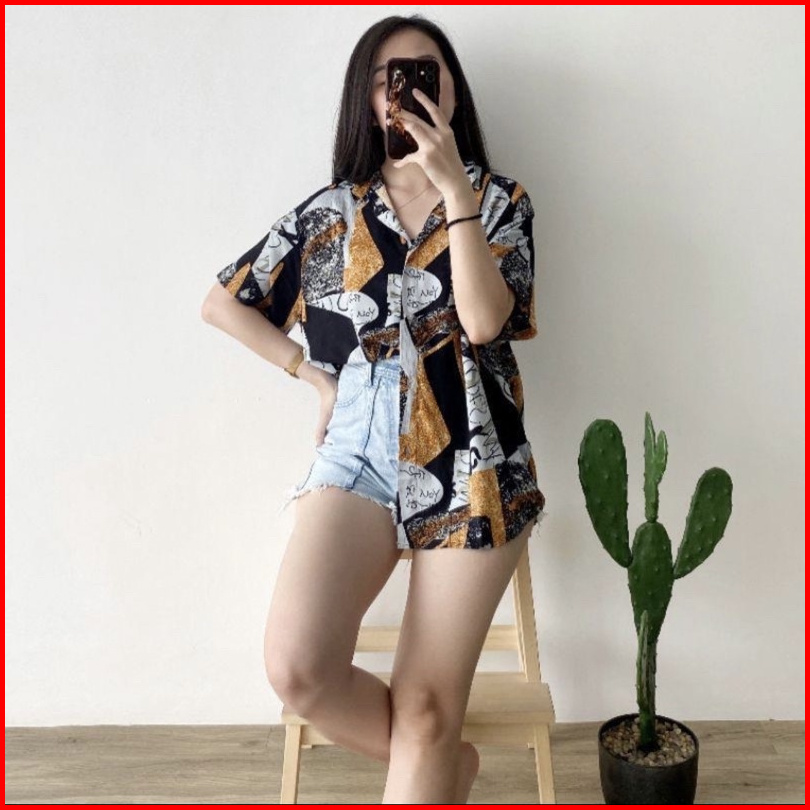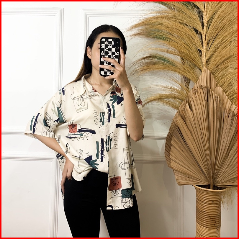 Kemeja Wanita Vintage Hawai Kemeja Pantai Abstrak Casual Retro Bahan Rayon Vicouse Premium