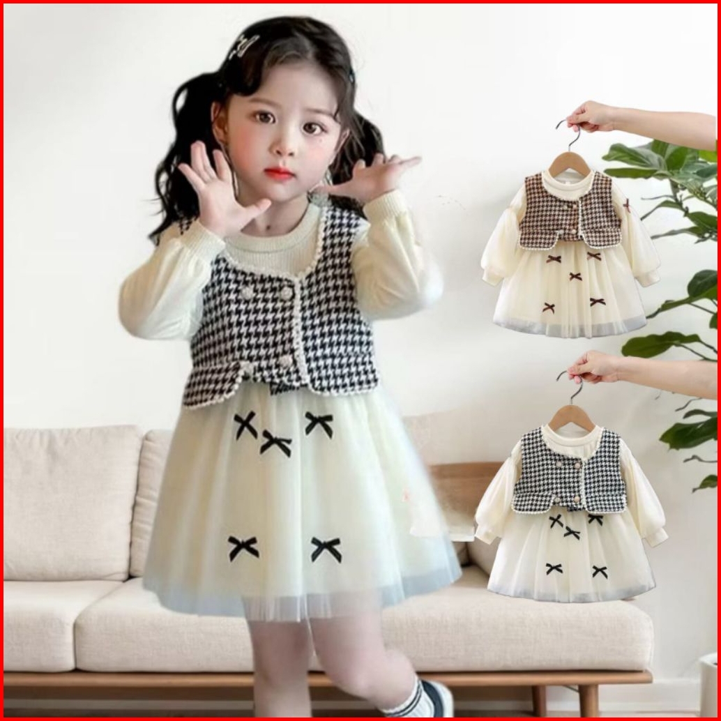 Sweetie Dress Dress Baby Lengan Gelembung Model Rompi 1-4 Th Dress Anak Perempuan Lengan Panjang