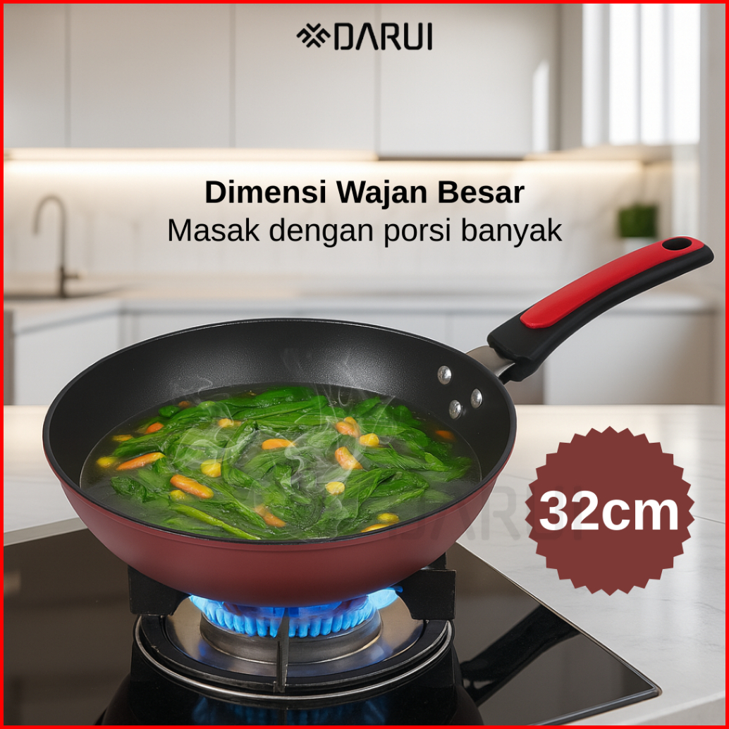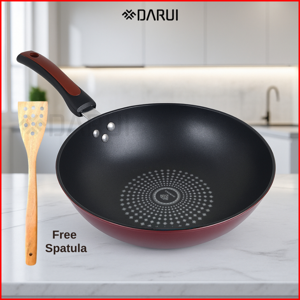 Teflon Anti Lengket Wajan Diamond Wok 32cm Permukaan Batu Medis Anti Lengket Spatula