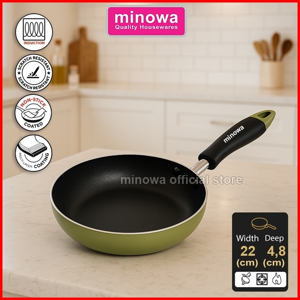 Minowa Teflon Penggorengan 16 18 20 22 24 26 28 Cm Frying Pan Cl Series Hijau