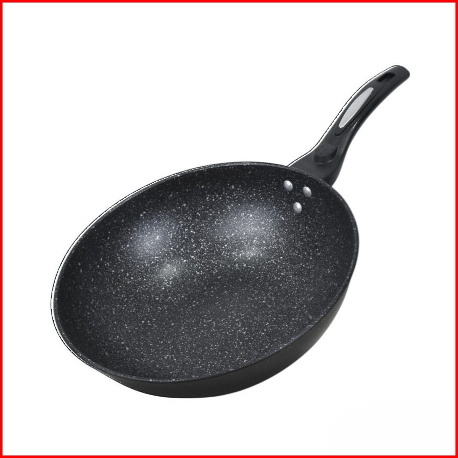 Lake Wok Pan Teflon Anti Lengket Tahan Gores Wajan Penggorengan Batu Medis 32 Cm Gagang Kayu