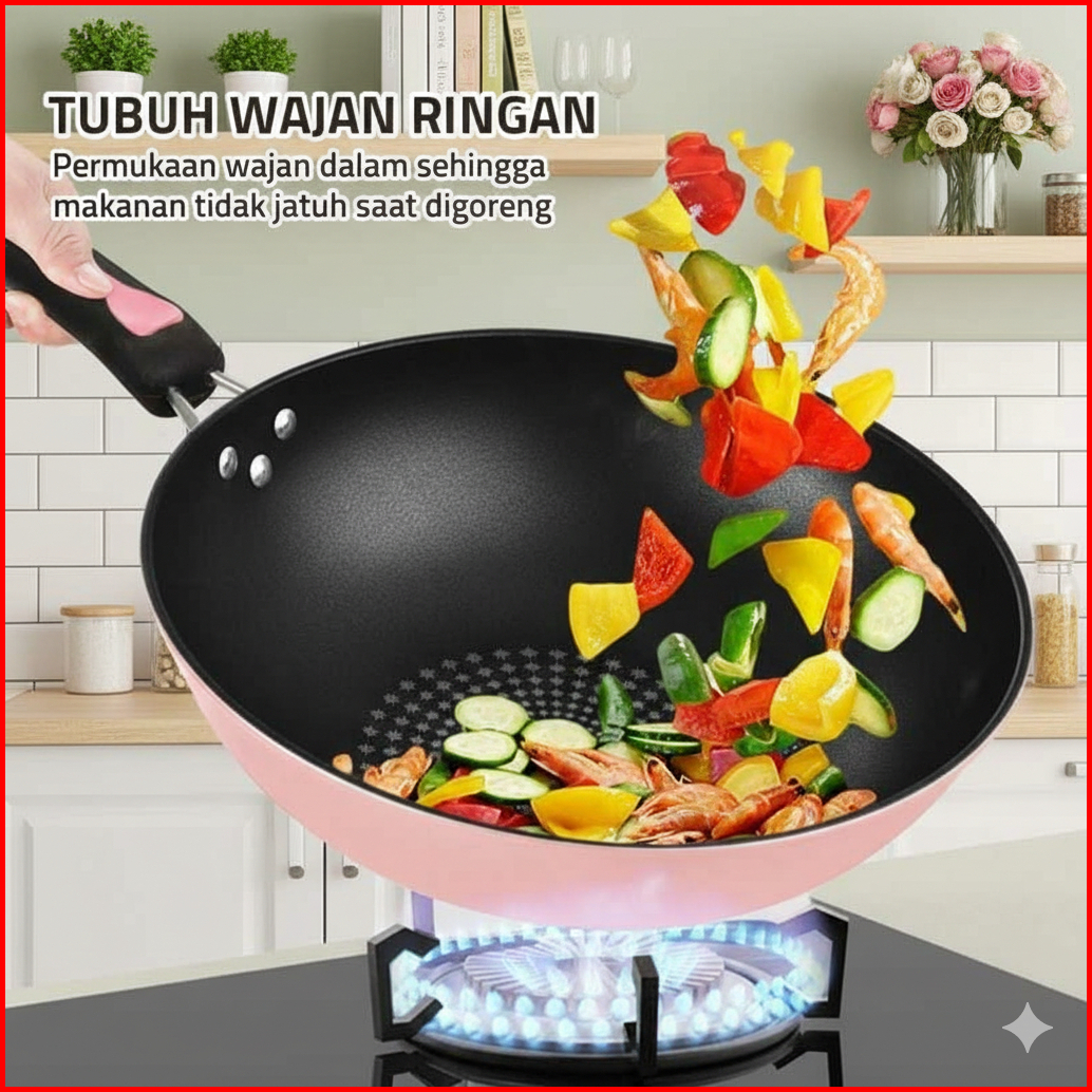 Panci Teflon 30cm Wajan Penggorengan Anti Lengket Wok Pan Teflon Jumbo Praktis