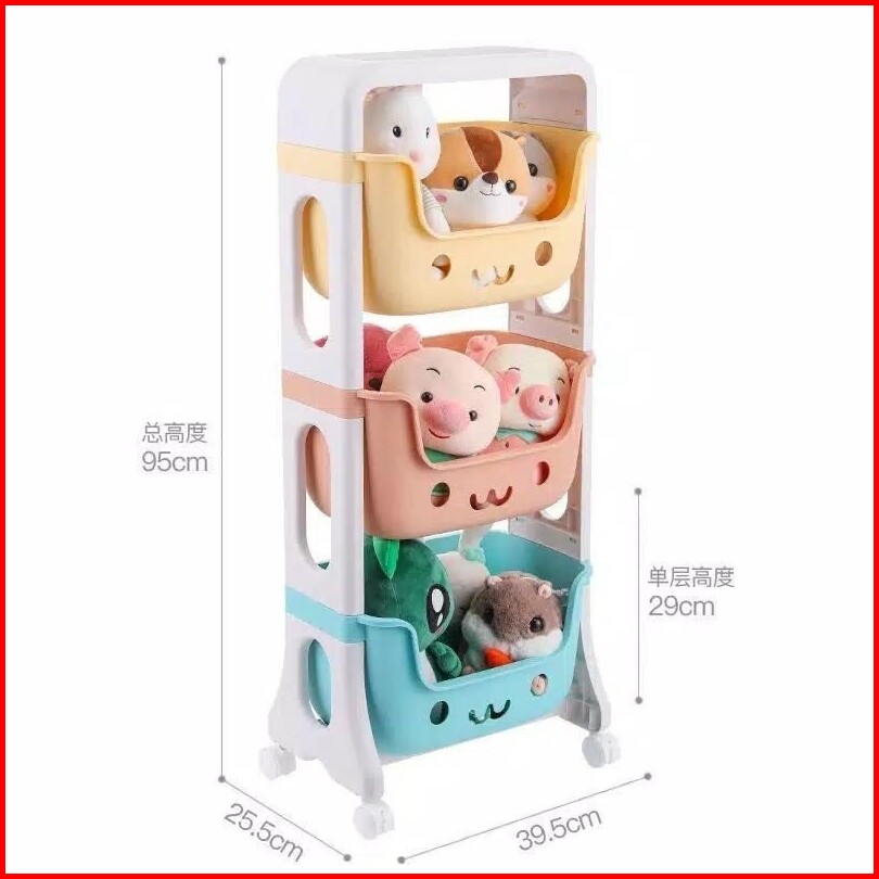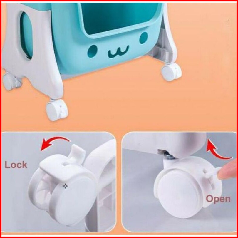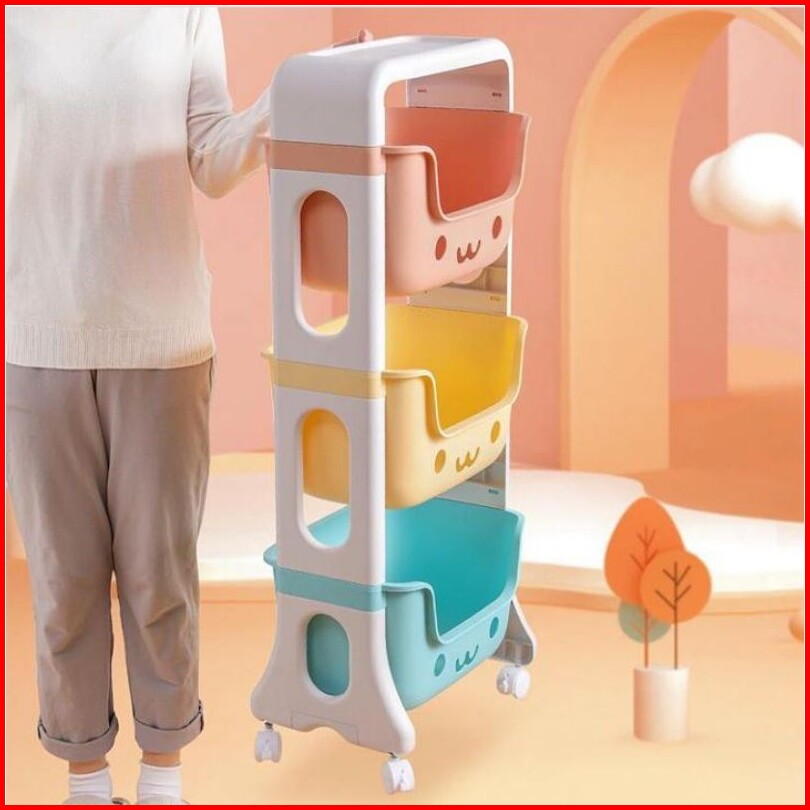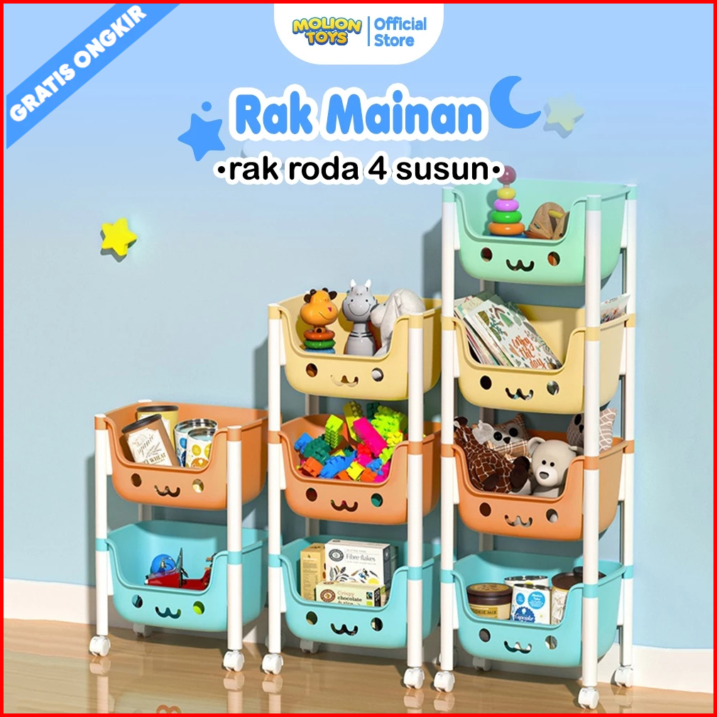 Rak Mainan Anak 4 Susun Q2-8804 Rak Plastik Roda Serbaguna Untuk Mainan Buku Molion Toys
