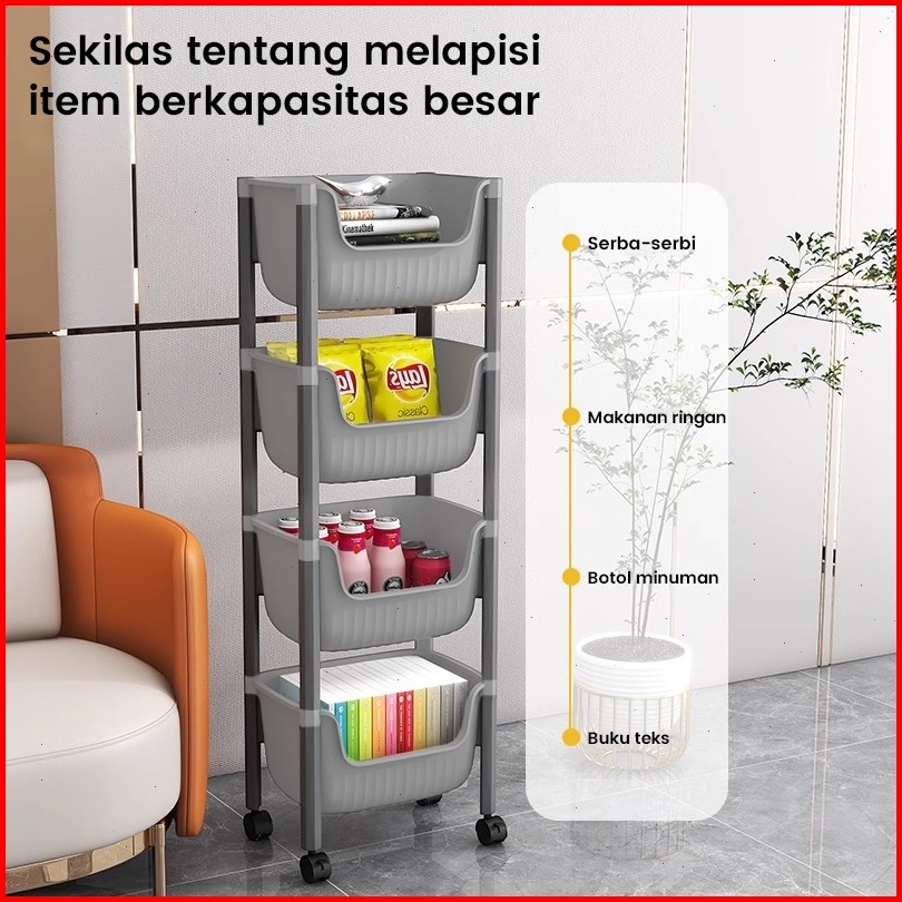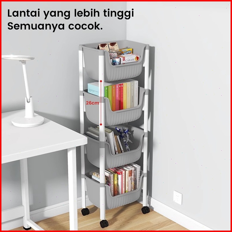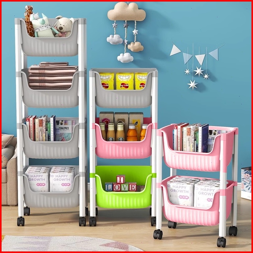Muutoo Rak Susun Penyimpanan Terbuka Rak Penyimpanan Mainan Serbaguna Rak Trolley Susun Dengan Roda Rak Buku Plastik