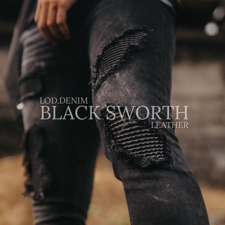 LOD.DENIM BLACK SWORTH LEATHER Celana Panjang Jeans Denim robek tidak tembus kulit pensil ketat SkinnyFit Slimfit Stretch Elastis kualitas tinggi