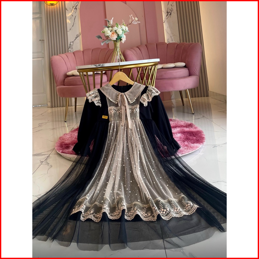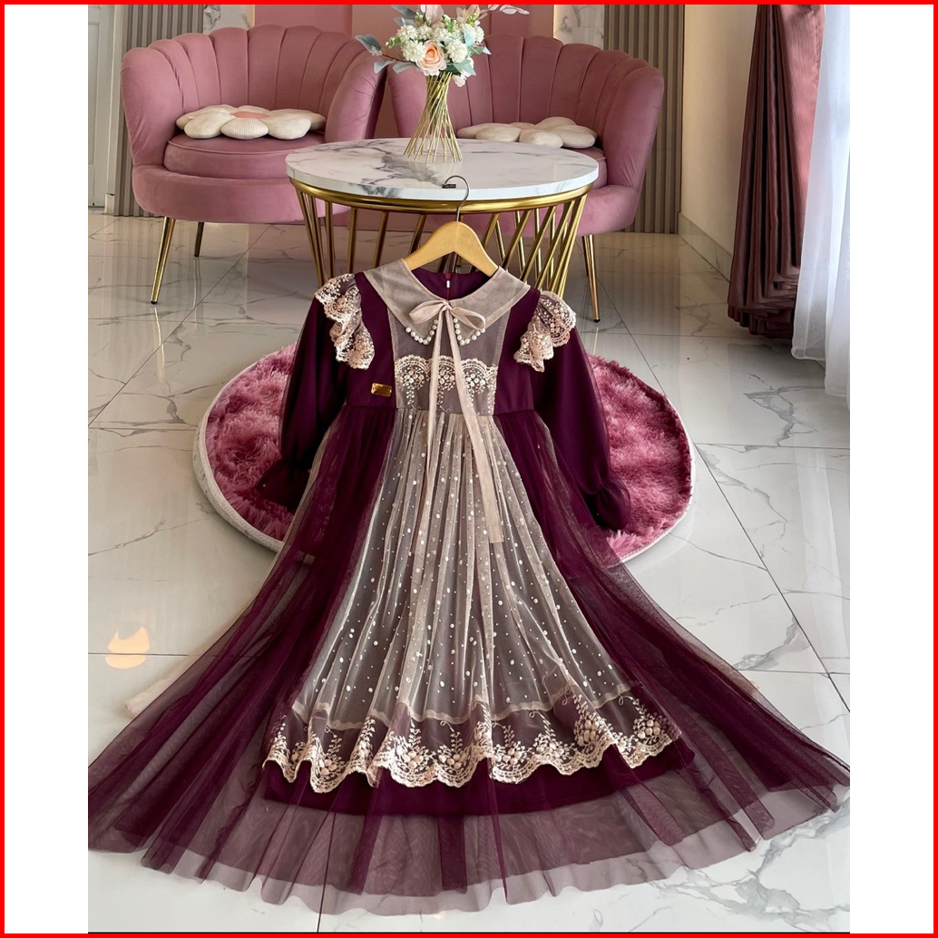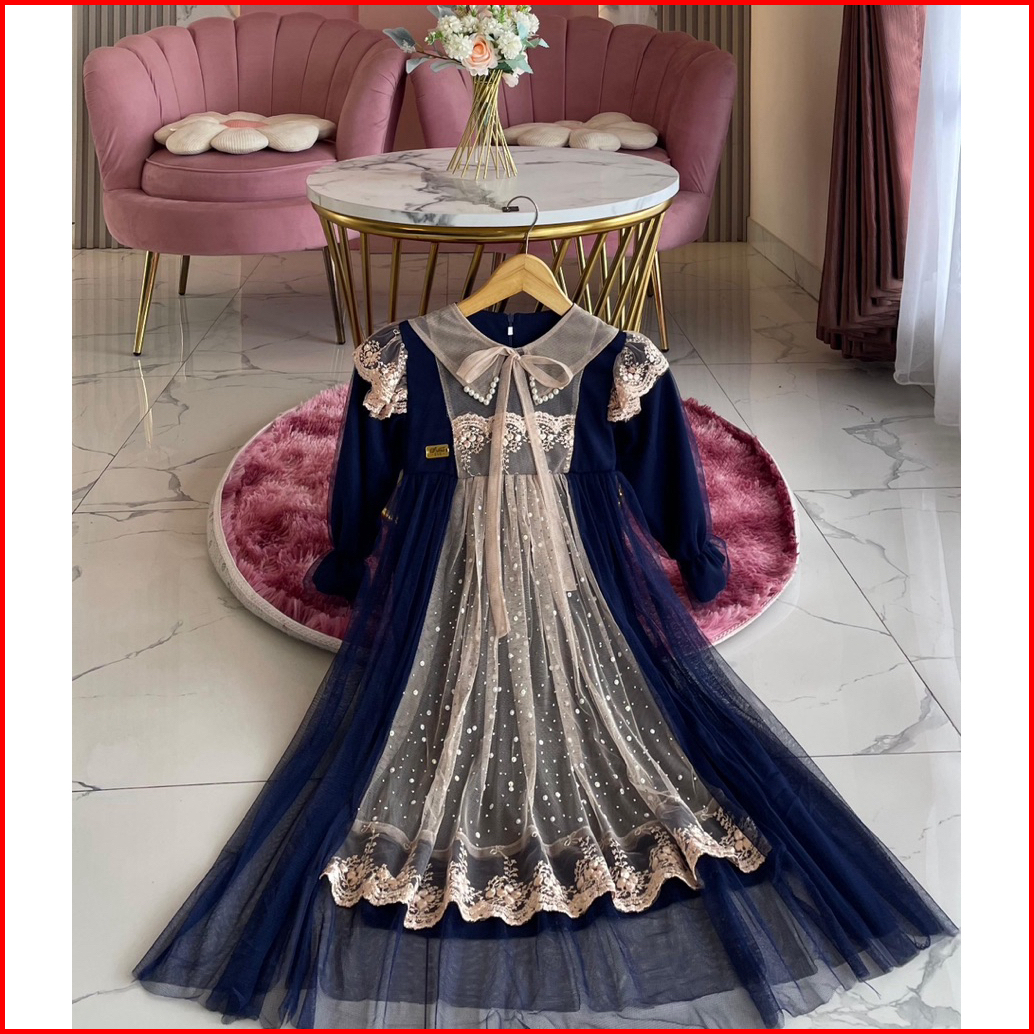 Elsa Dress Gamis Princess Anak Perempuan Bahan Brokat Mix Tille Snow Usia 3-15 Tahun Mewah Elegan