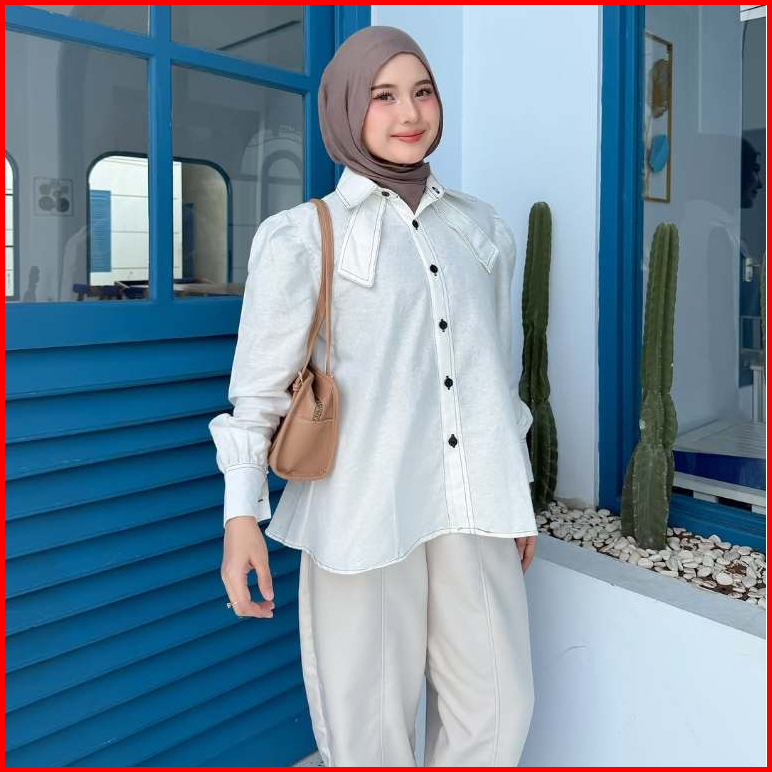 Pola Wear Kemeja Blouse Wamita Kerah Pita Lengan Panjang Top Blouse Rammi Brianna