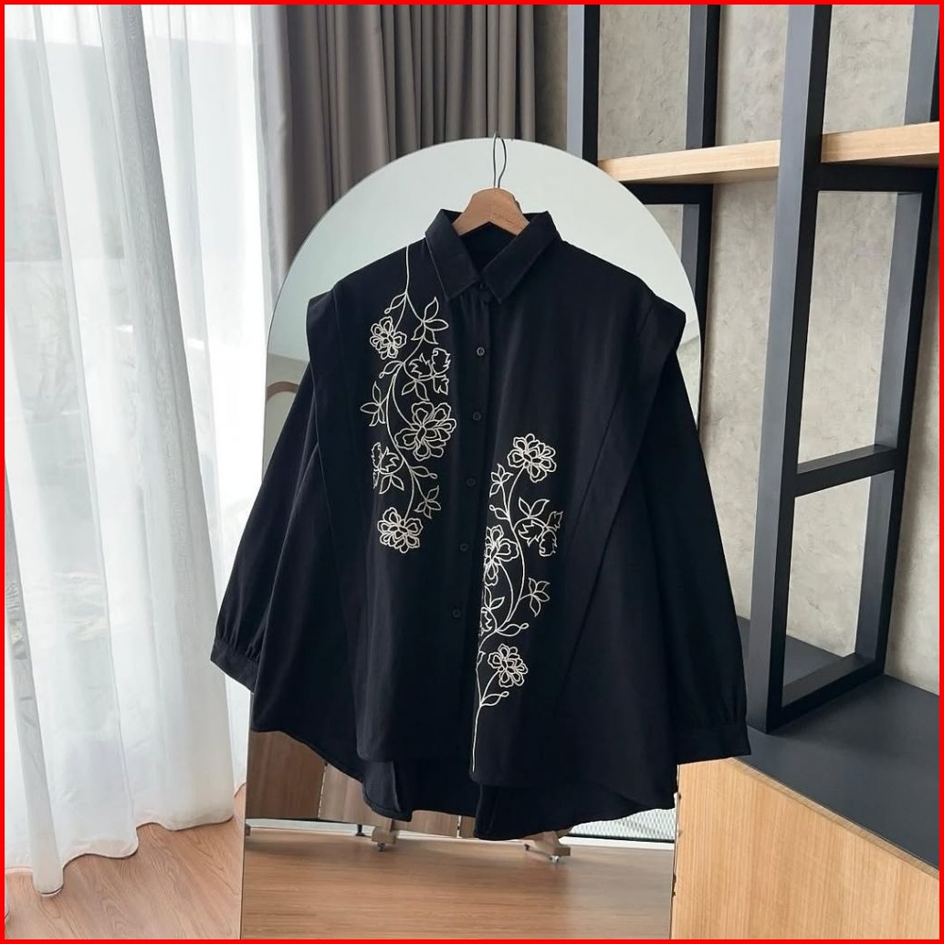 Ginna Blouse Bordir Rayon Twill Bunga-bunga