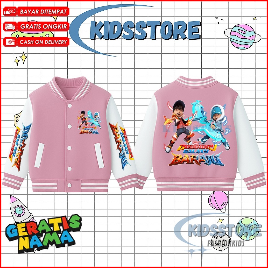 Jaket Varsity Anak Boboiboy Galaxy Baraju - Jaket Varsity Laki-laki Perempuan Boboiboy Galaxy Baraju Free Nama