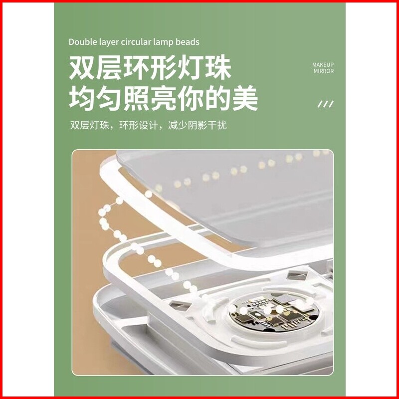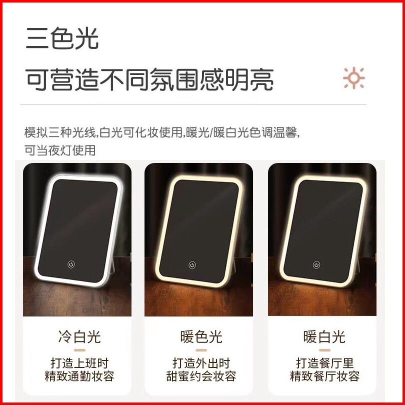Cermin Rias Cermin Kaca Make Up Dengan Lampu Led Rechargeable Tombol Touch Screen