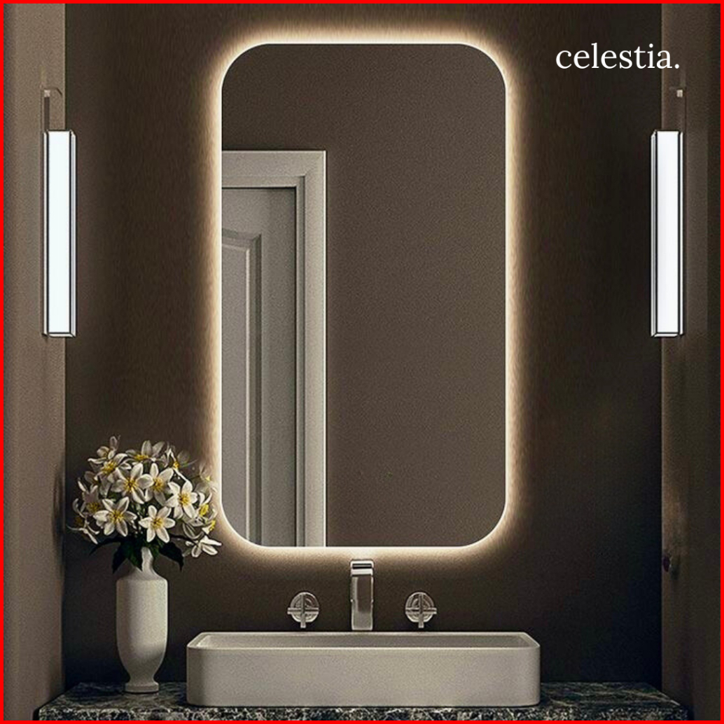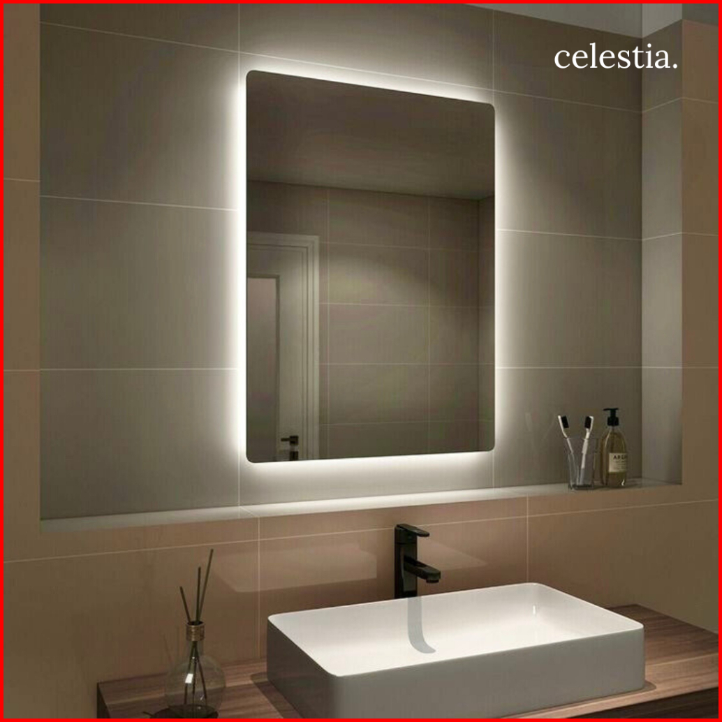 Cermin Estetik Motif Persegi Led Cermin Led Dekorasi Ruangan Cermin Wastafel Cermin Kamar Mandi Cermin Rias Cermin Kaca