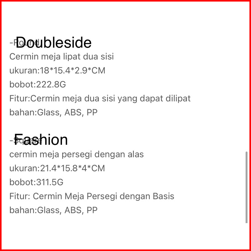 Bali Miniso Cermin Kotak Dua Sisi Cermin Bulat Round Fashion Mirror Square Table Mirror Kaca Make Up Cermin Makeup
