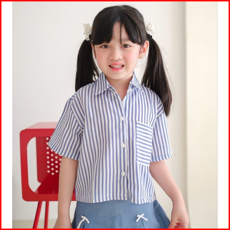 Momnnaura Kemeja Anak Perempuan Nala Shirt Atasan Anak Motif Garis Garis Usia 1 - 8 Tahun