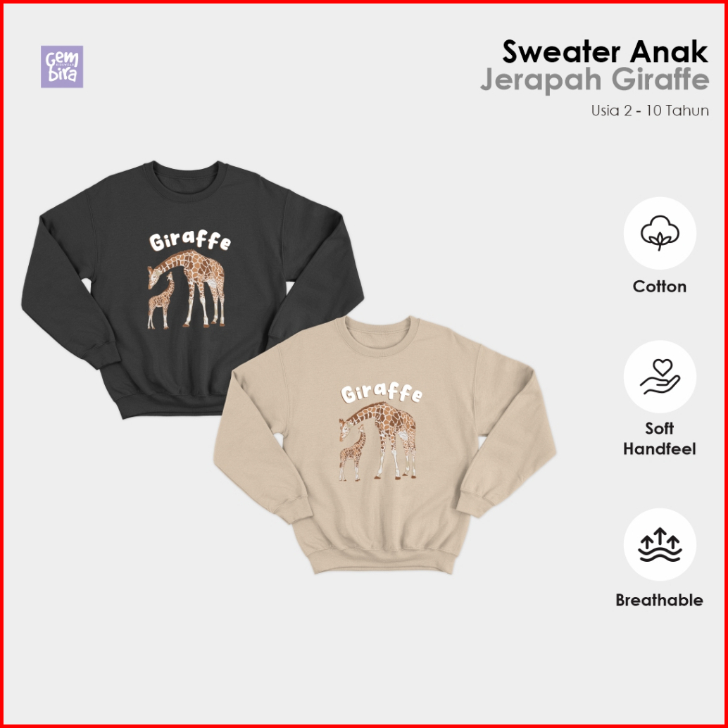 Crewneck Baju Atasan Anak Sweater Anak Laki Laki Perempuan Jerapah Giraffe Usia 1 2 3 4 5 6 7 8 9 10 Tahun Cowo Cewe Gem