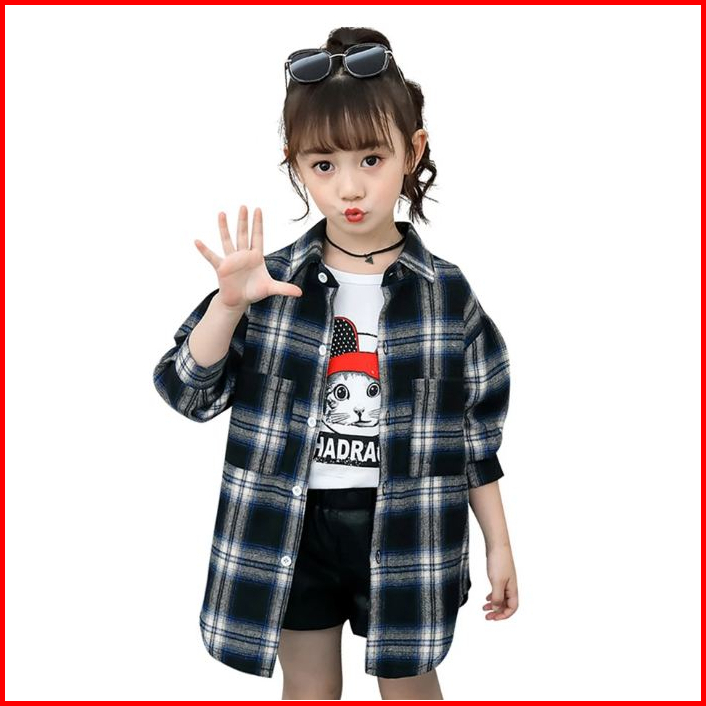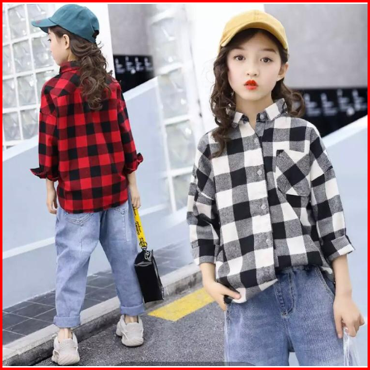 Hot Sale Kemeja Flanel Anak Perempuan 5-12 Tahun Lengan Panjang Motif Kotak Kotak Catur