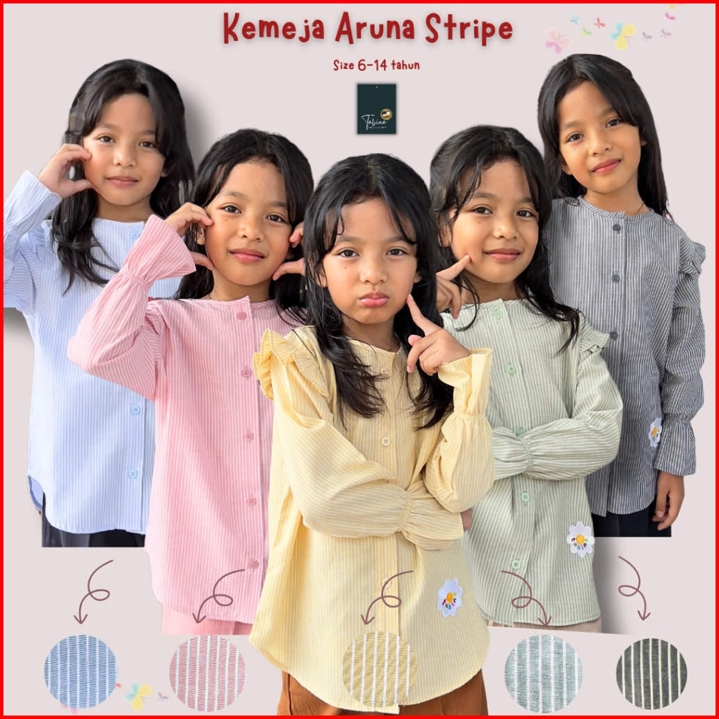 Atasan Garis Salur Kemeja Anak Dan Remaja Perempuan Tabina Seri Aruna Usia 5 Hingga 14 Tahun