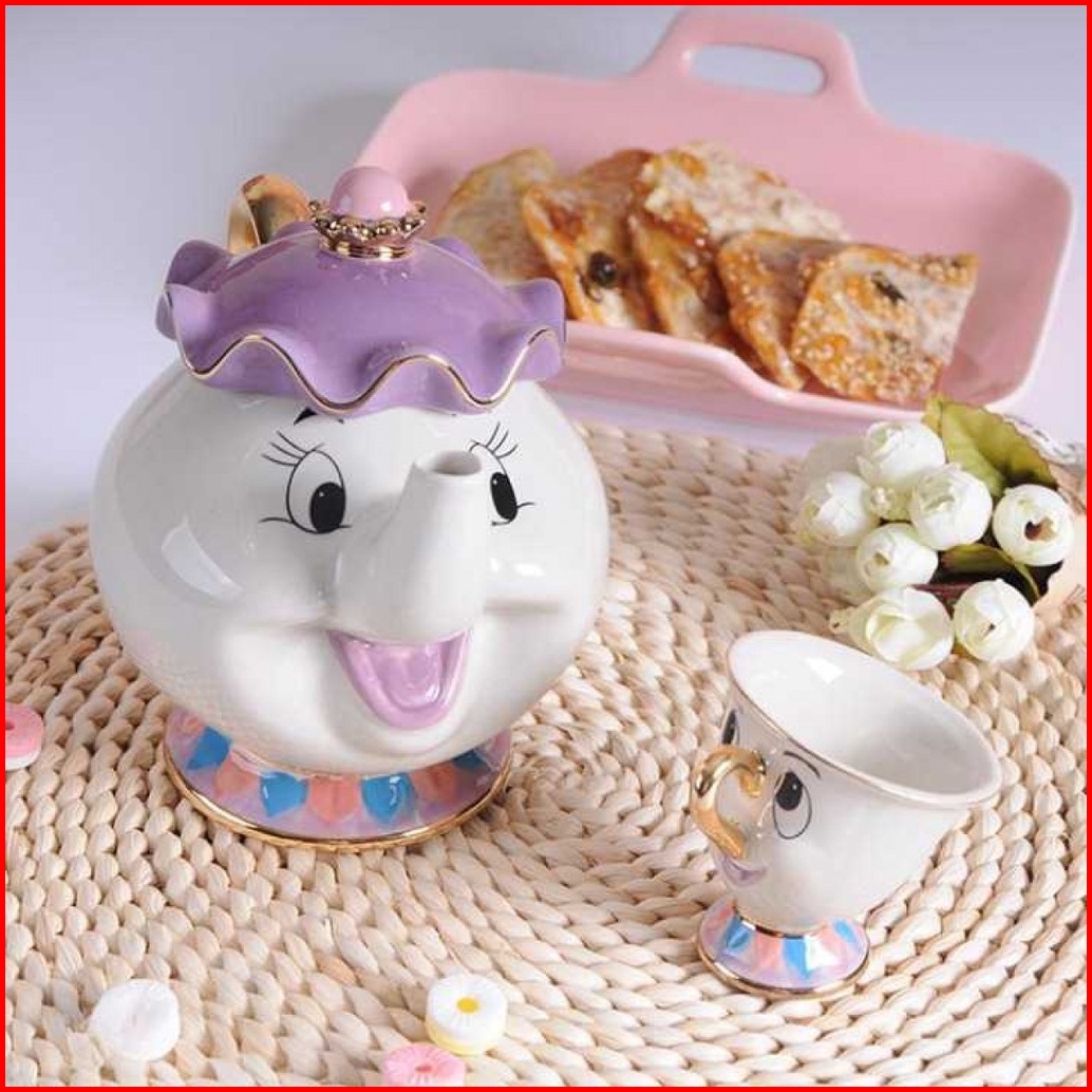 Set Teko Cangkir Teh Beauty And The Beast Keramik - Lfgbeec