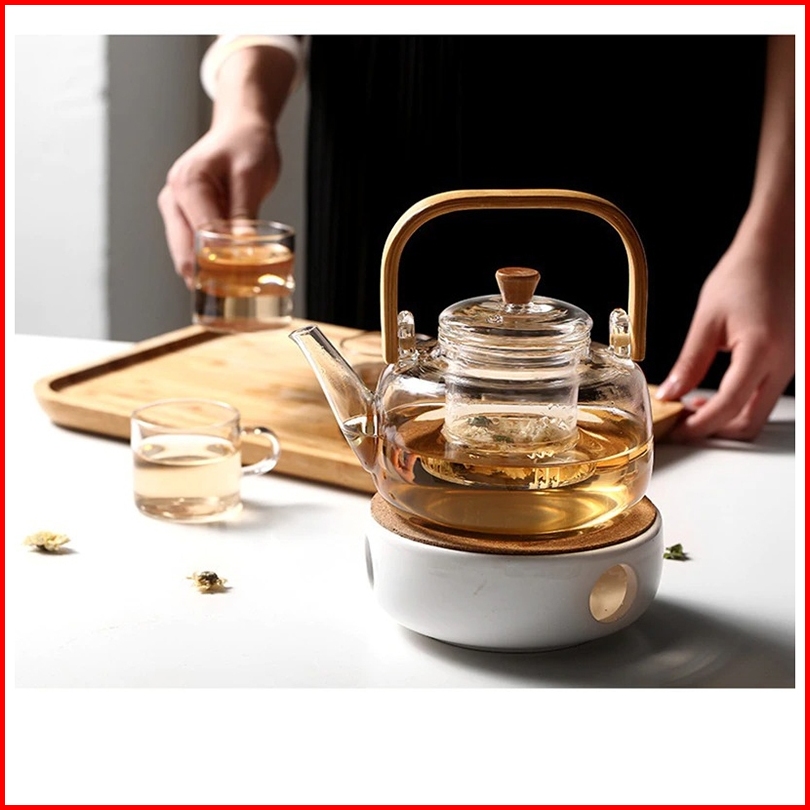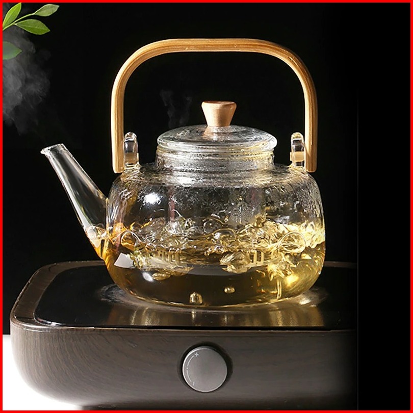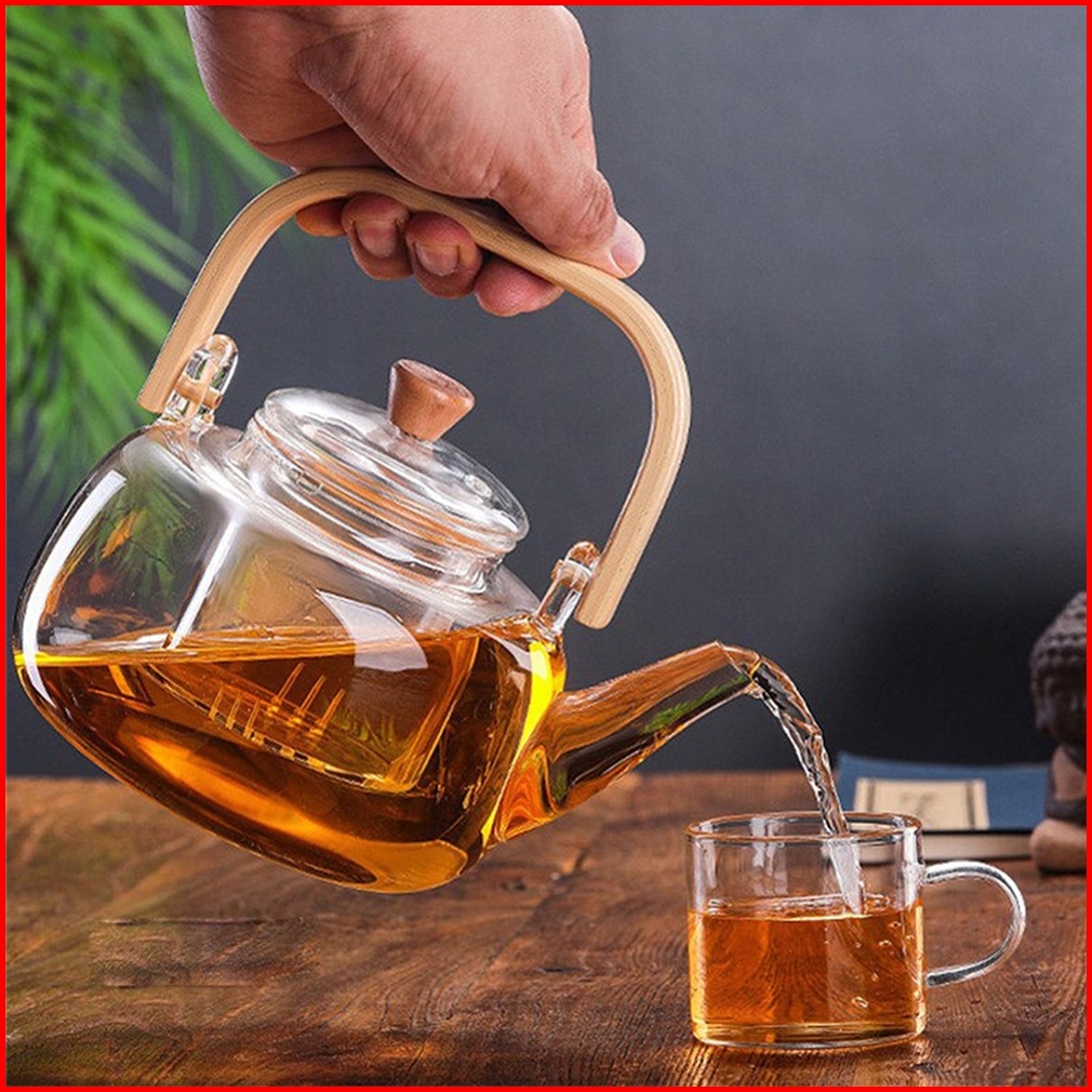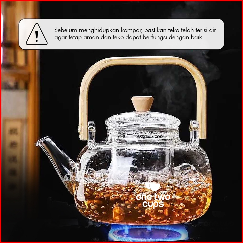 One Two Cups Teko Pitcher Teapot Glass Japanese Style Tahan Panas Api Handle Kayu - 8cv101