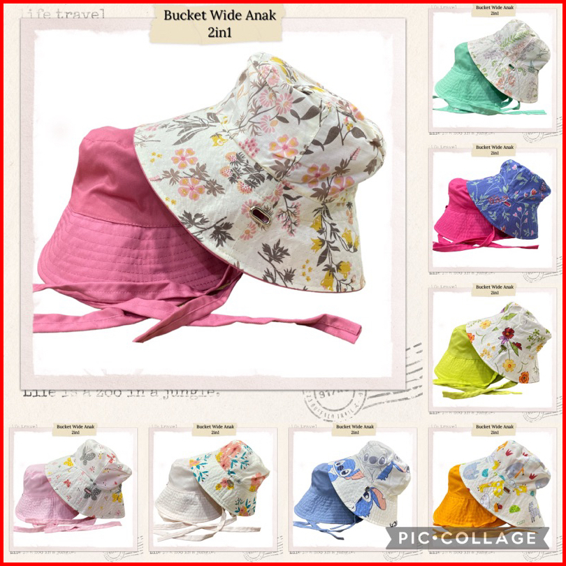 Bucket Wide Anak Dua Sisi Size M 54cm - Bucket Selebgram Anak - Bucket Wide Dua Sisi - Bucket Wide Anak Motif