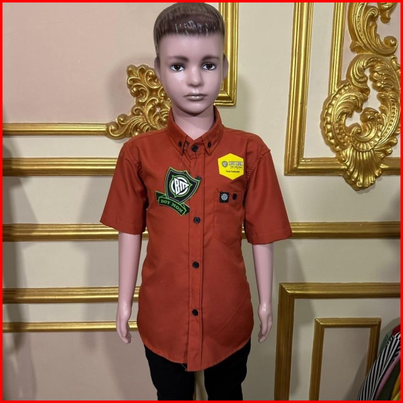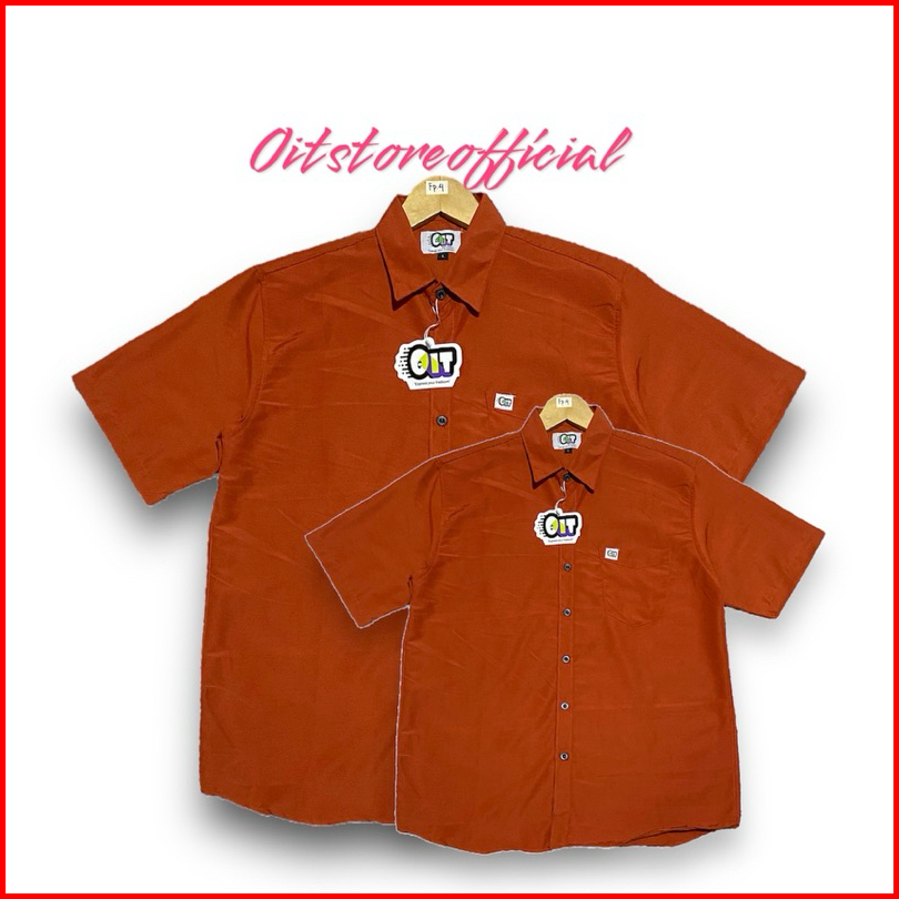 Kemeja Teraccota Merah Bata Couple Keluarga Ayah Dan Anak Baju Kemeja Atasan Polos Warna Teraccota Merah Bata Lengan Pen