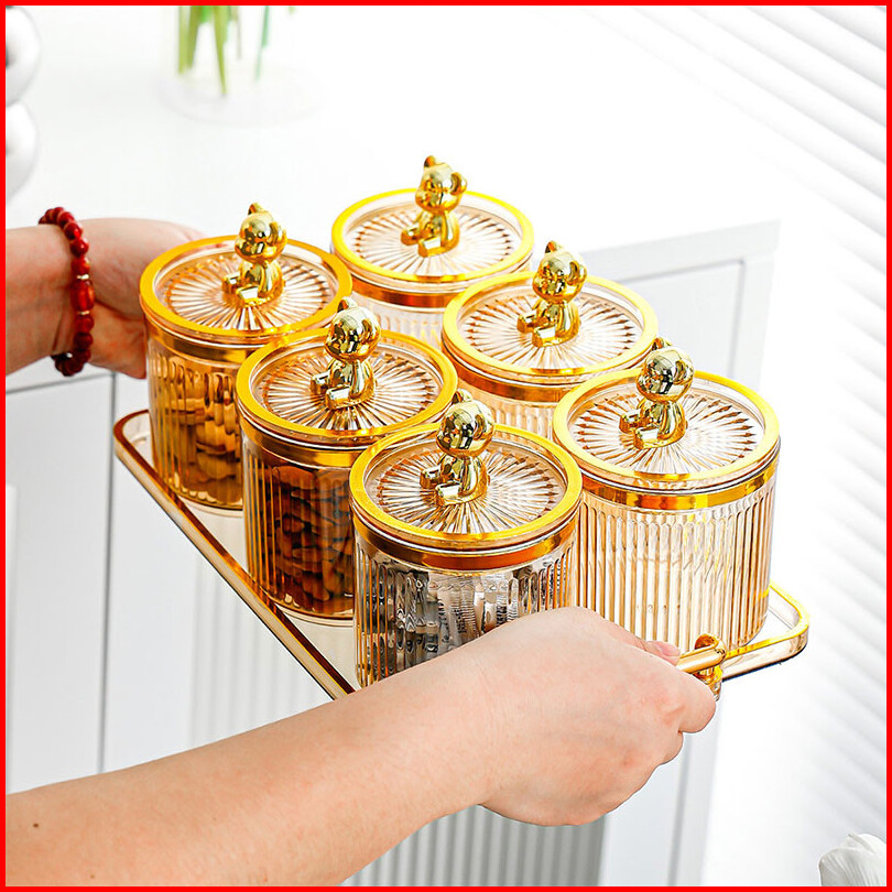 Toples Mewah Set Dengan Nampan Segel Kedap Udara - Kotak Penyimpanan Makanan Dapur Untuk Kue Bumbu Dan Camilan Plastik F