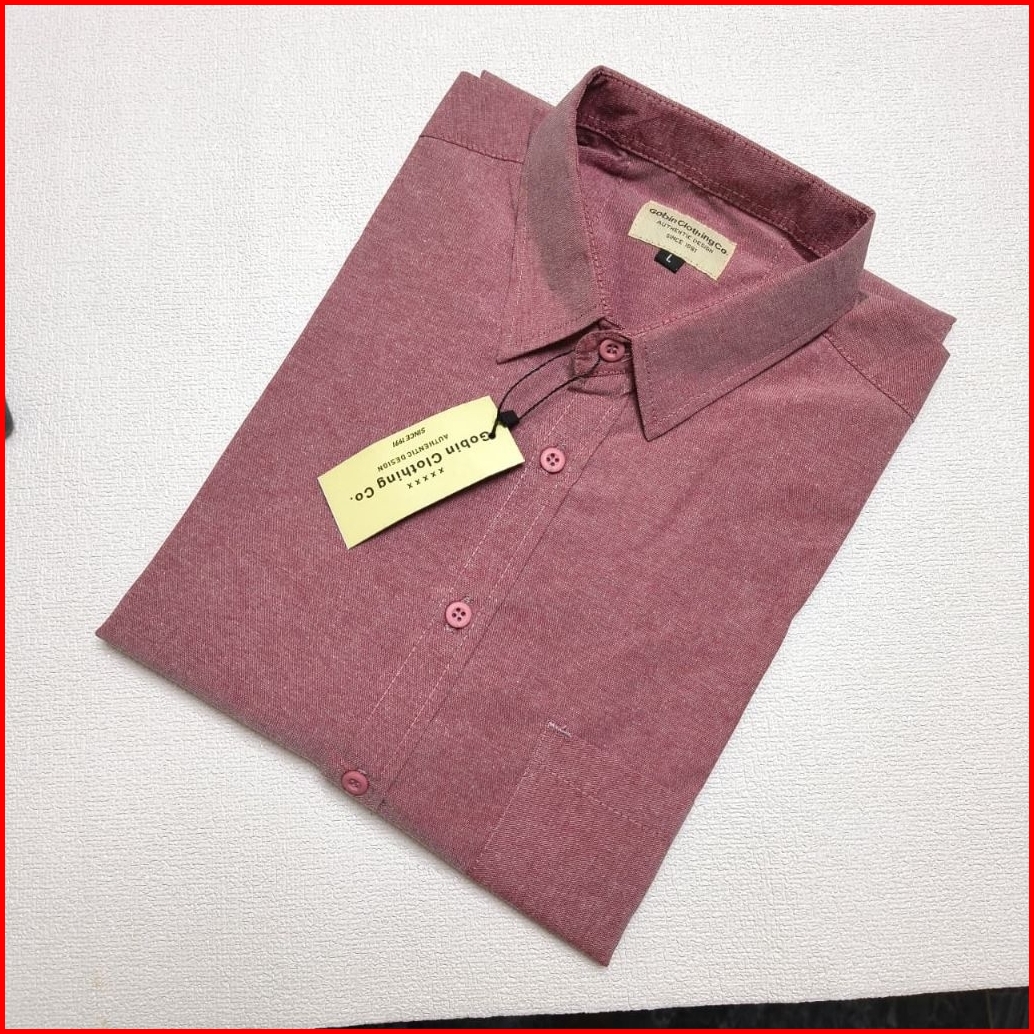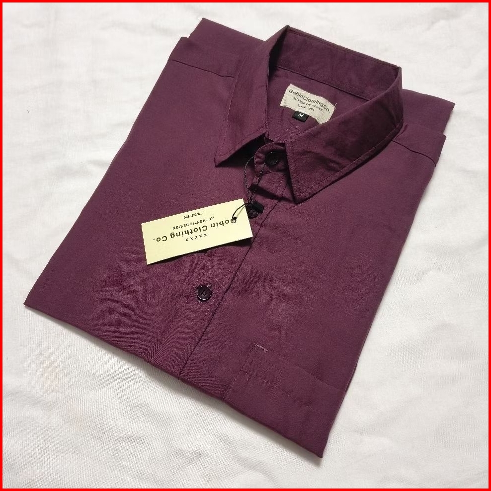 Kemeja Polos Pria Lengan Pendek Warna Burgundy Baju Atasan Kerja Bahan Katun Oxford