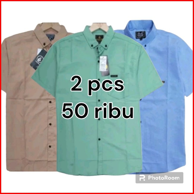 Paket Hemat 2 Pcs Cuma 50 Ribu Kemeja Polos Lengan Pendek Pria Trend 2024