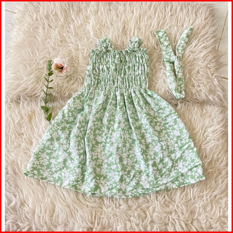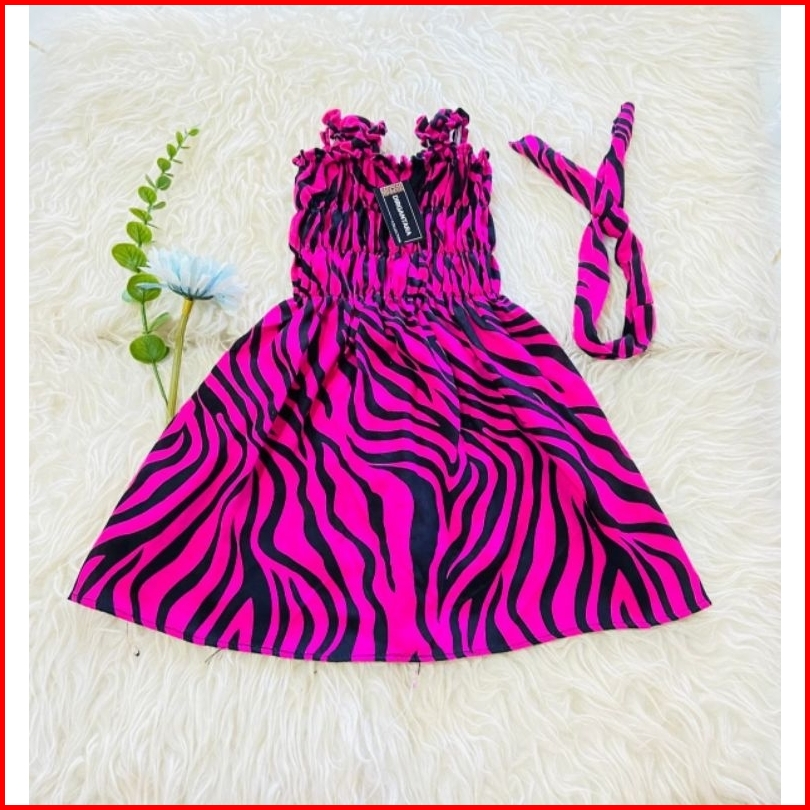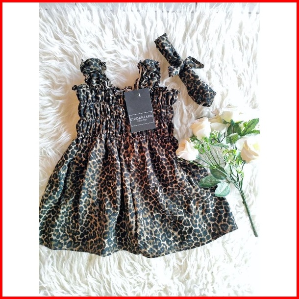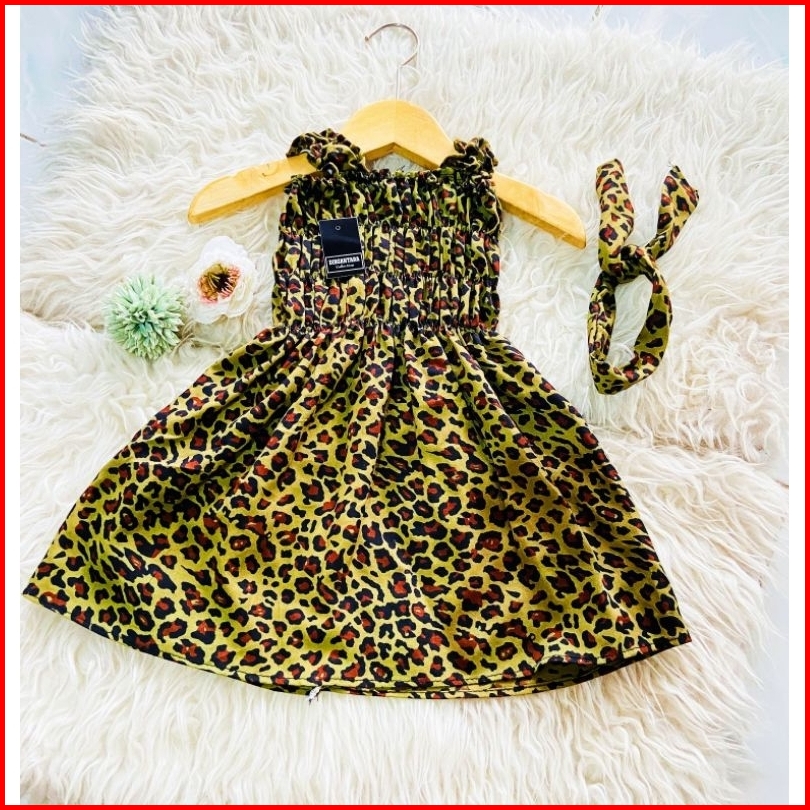 Dirgantara Dress Kerut Anak Bahan Katun Rayon Leopard Free Bando