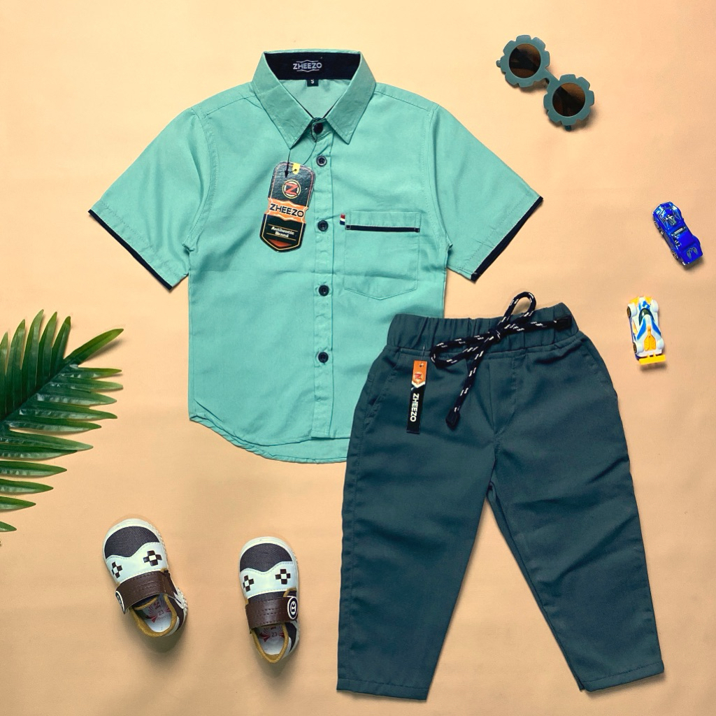 ZHEEZOKIDS - SETELAN BAJU ANAK LAKI LAKI USIA 1-12 TAHUN SETELAN KEMEJA PENDEK CELANA PANJANG