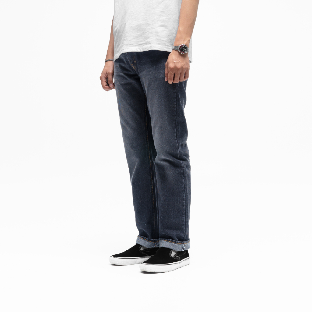 Volkvog Jeans Grey Wave Celana Panjang Washed Denim Pria Slim Straight Abu