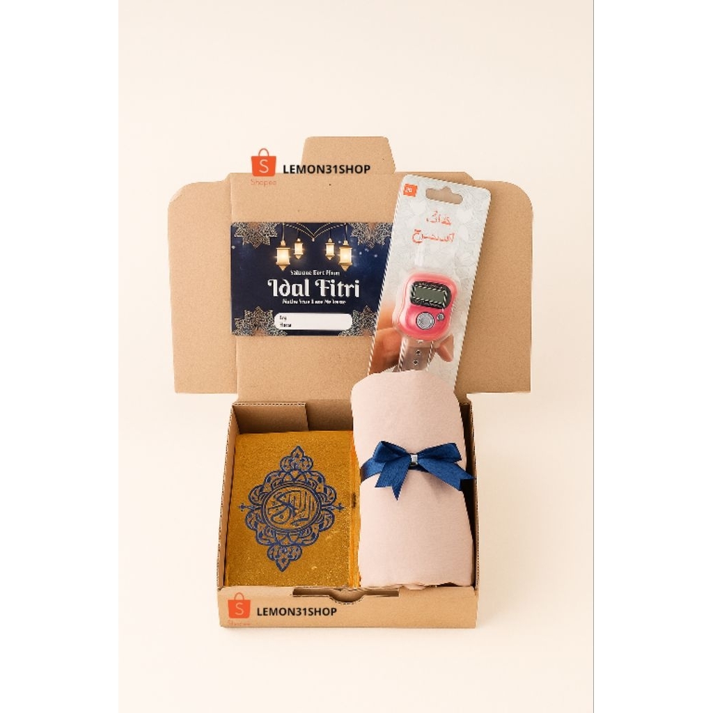 HAMPERS ALQURAN HIJAB SAJADAH TRAVEL TASBIH DIGITAL TASBIH KAYU SOUVENIR WEDDING UMROH HAJI TAHLILLAN PENGAJIAN KADO ULANG TAHUN HADIAH GIFT BOX WEDDING JILBAB SEGI EMPAT BELLA SQUARE